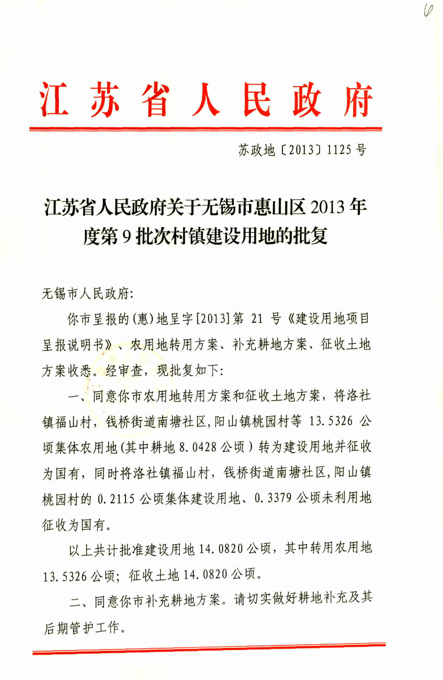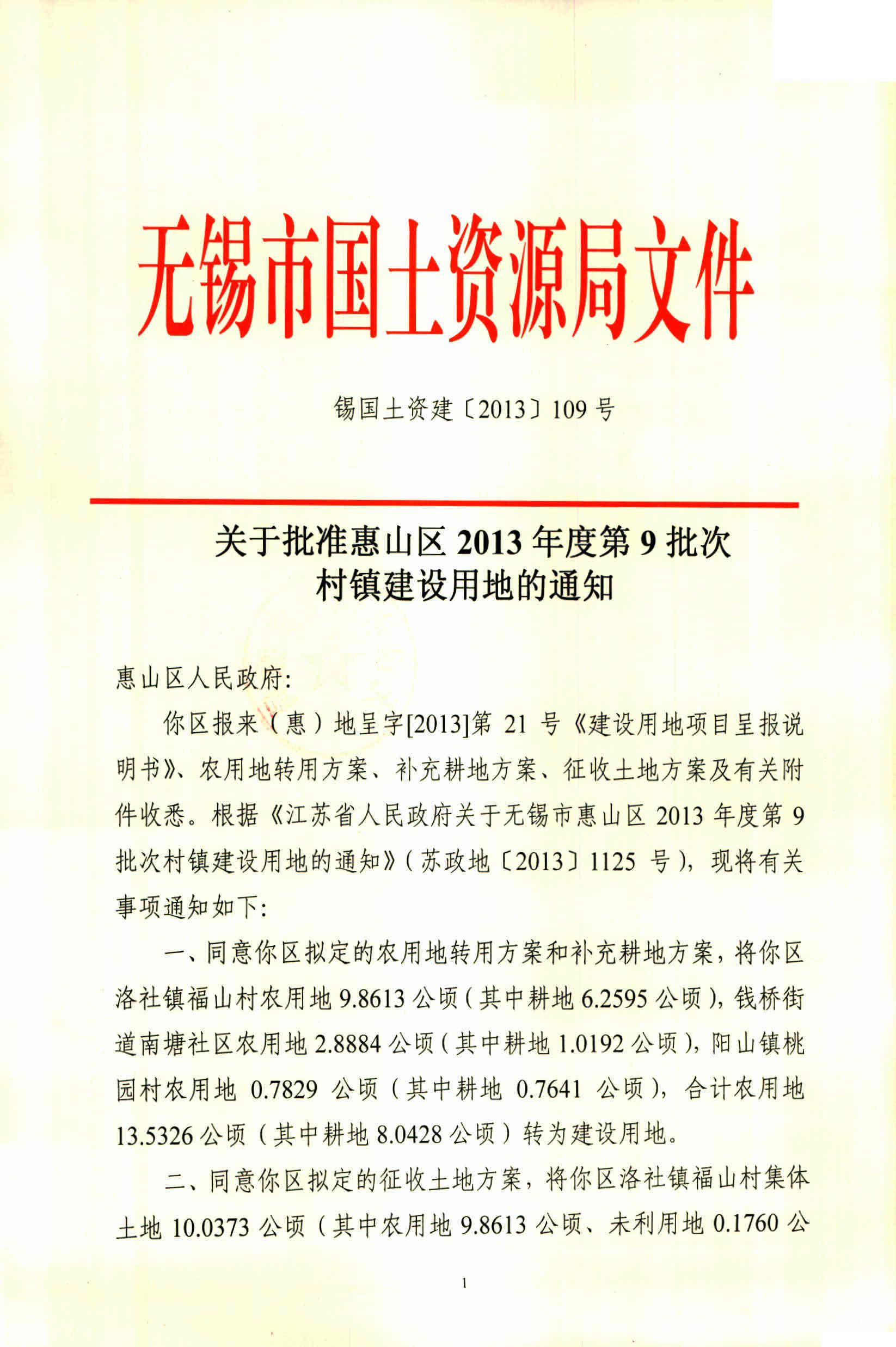 无锡市惠山区2013年度第9批次村镇建设用地